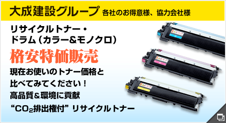大成建設グループ会社お得意様・協力会社様向けに、リサイクルトナー・ドラム(カラー&モノクロ)を販売しております。 詳細は下記をクリックしてご確認くださいませ。